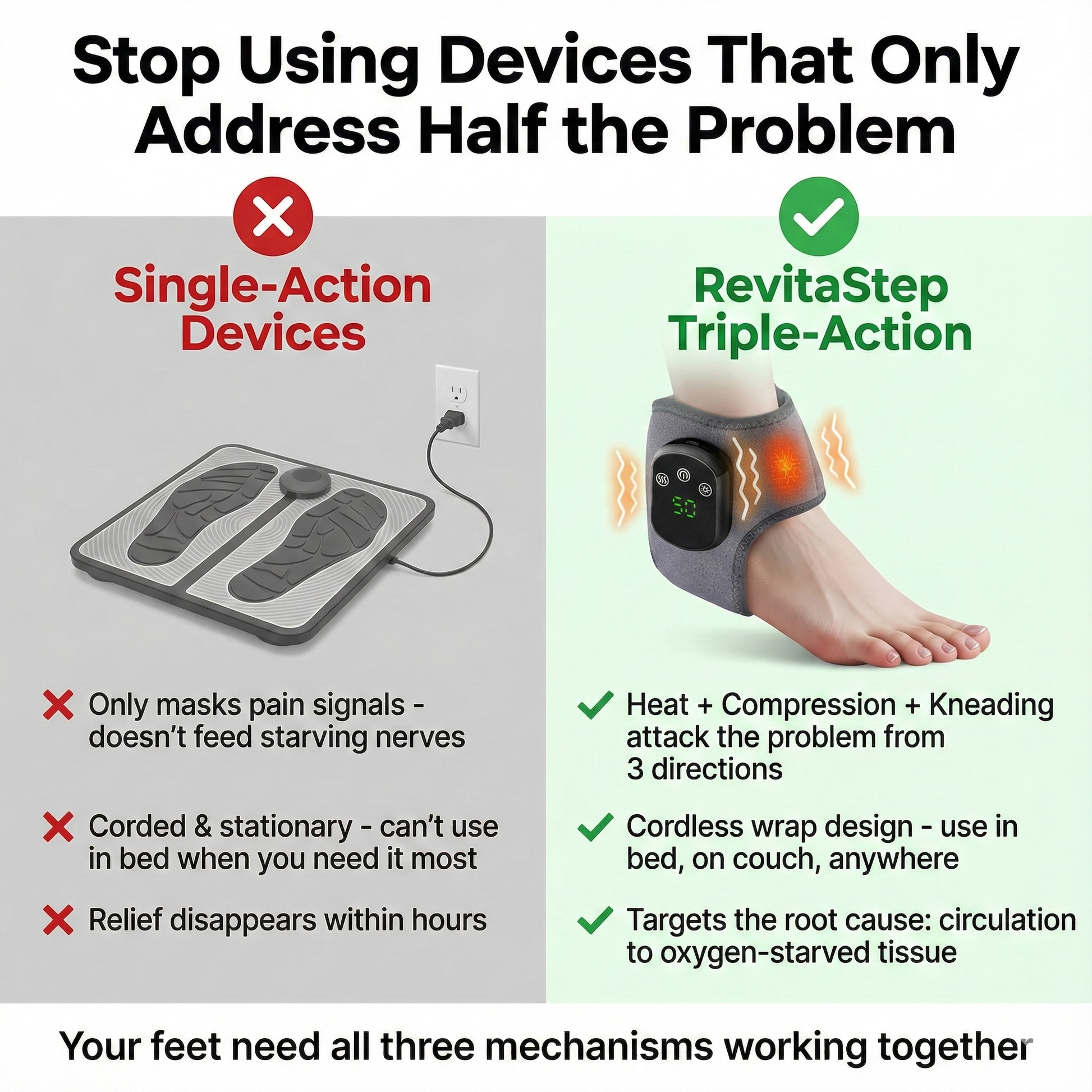RevitaStep combines THREE therapies working simultaneously. That's the difference between surface-level sensation and deep, lasting relief.