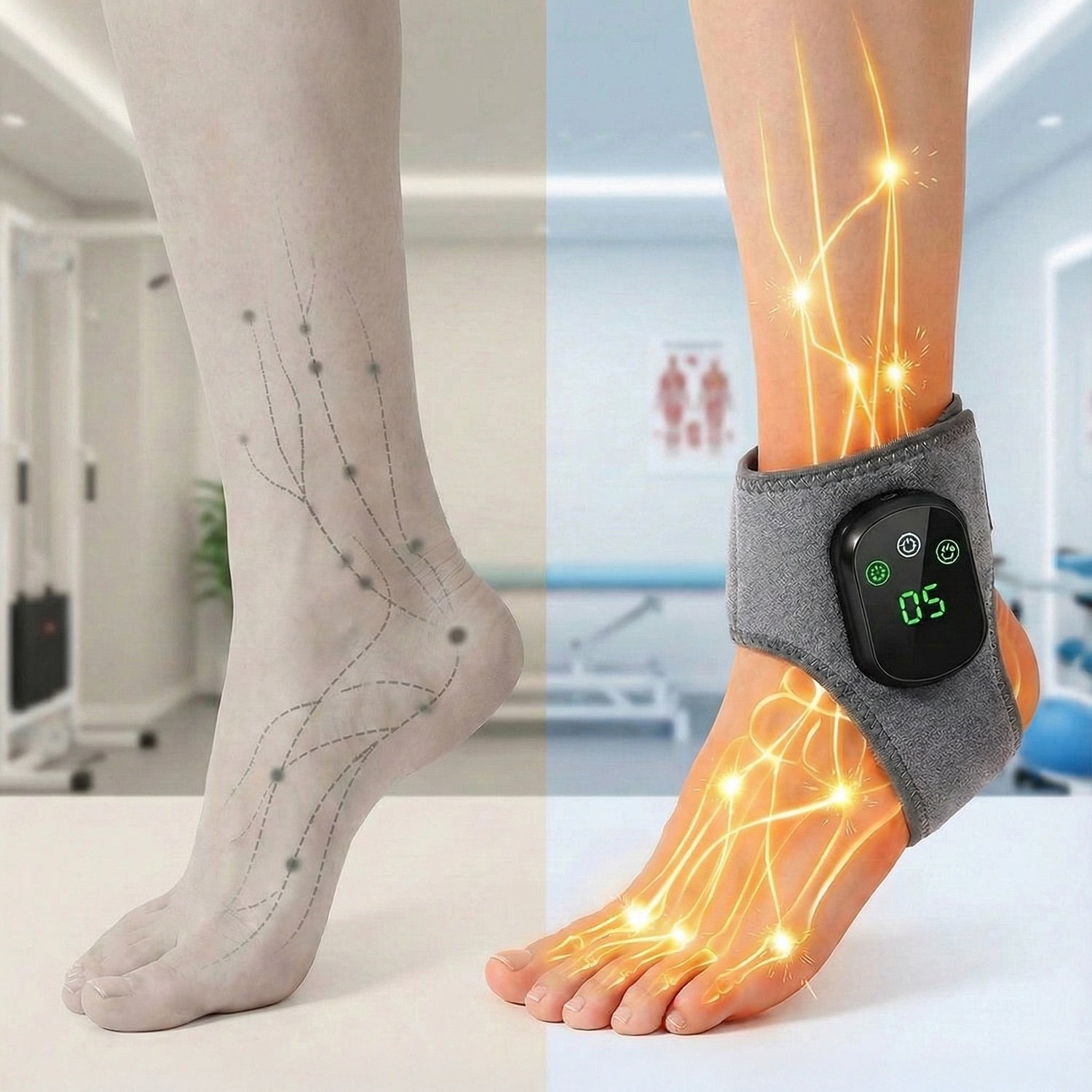 No apps. No WiFi. No complicated settings. Just wrap it around your foot, press one button, and relax. That's it. If you can use a TV remote, you can use RevitaStep.